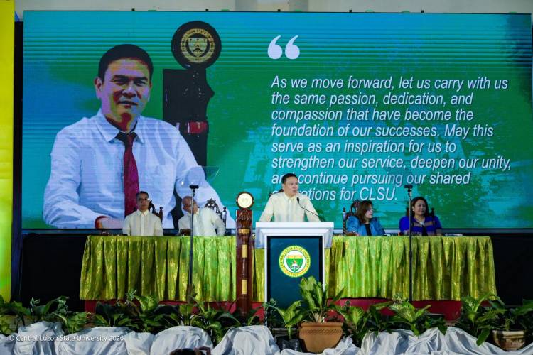 Marking the 119th founding anniversary of Central Luzon State University (CLSU), University President Dr. Evaristo A. Abella successfully delivered a powerful State of the University Address (SUA) anchored on the theme “Liwanag at Lakas: CLSU sa Pagsulong ng Maginhawang Bukas” during the Special Joint Session of the Program Councils held at the University Auditorium on April 16, 2026. Speaking before the Board of Regents, employees, students, alumni, and partners, Dr. Abella shared a comprehensive narrative of the university’s journey - a transition from addressing "institutional pains" to celebrating global "podium finishes” using his own version of 4Ps. The first “P” stands for Pains (Mga Hamon at Katotohanan). President Abella began his address openly, acknowledging the structural and systemic challenges the university has encountered, including limitations within the learning environment, excessive workloads, and mental health concerns. He emphasized that these issues are not just institutional flaws or mere statistics; they are human stories. "We do not hide these challenges; we accept them as reminders of what we can and must change,” he stated. The second “P” signifies Progress (Mga Pagbabago). To heal these "pains," the administration implemented the E-TREATMENTS framework, which has yielded significant results across all areas of university operations. This progress is especially evident in student welfare, infrastructure improvements, benefits and privileges for employees, research, partnerships, international mobility, and transparent governance. The third “P” is Podium (Mga Tagumpay). President Abella recognized faculty and staff who received distinguished awards and commended outstanding students for their achievements in research, poster presentations, journalism, quiz bee, sports, and national cultural contests. Likewise, he highlighted institutional recognitions and global rankings. “Ang mga pagkilalang ito ay hindi lamang mga parangal; ito ay malinaw na patunay ng ating sama-samang dedikasyon sa kalidad, integridad, at patuloy na pag-unlad bilang isang pamantasan,” said President Abella. The final “P” is Pursuits (Mga Susunod na Hakbang at Pangarap). Looking to the future, President Abella reaffirmed the university's goal of becoming a Premier Education Economic Zone by 2030. “We will continue to listen. We will continue to act. And we will continue to transform,” said President Abella. To conclude his speech, President Abella expressed heartfelt appreciation for everyone who contributed significantly to the success of the University particularly the employees, students, industry partners, alumni, and the Board of Regents, and called for continued unity to build a sustainable and inclusive future for all CLSU stakeholders. #CLSULiwanagatLakas #SievingForExcellence