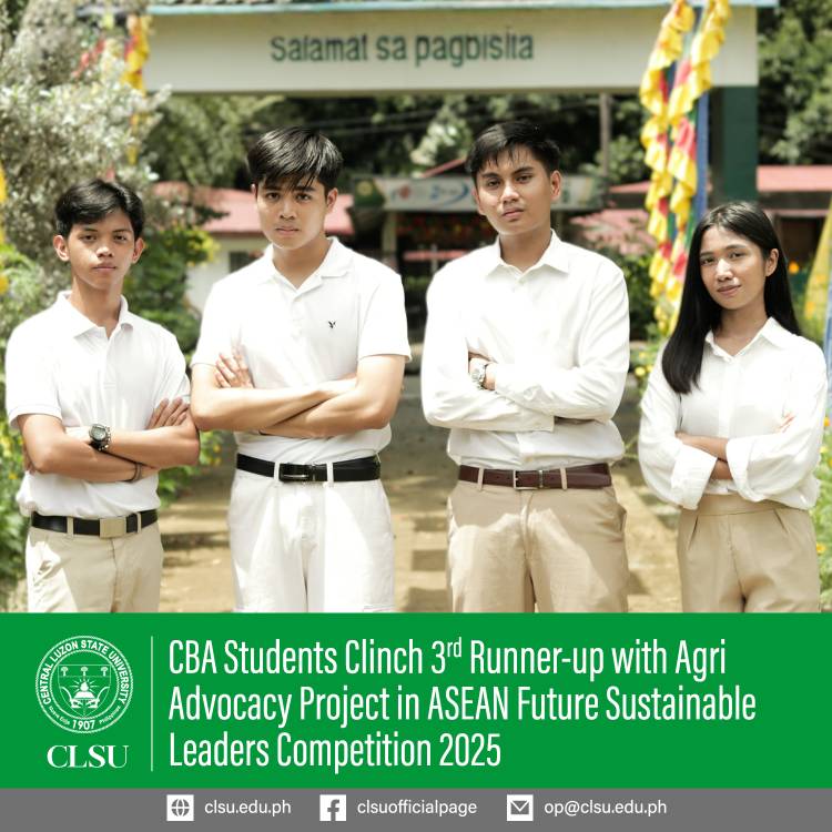 Students from the College of Business and Accountancy (CBA) clinched 3rd Runner-Up in the ASEAN Future Sustainable Leaders Competition (AFSLC) with their project “Pamanang Tumana: A Farmer’s Legacy.” The national-level contest, held on October 4, 2025, brought together accounting students from across the Philippines to present innovative, multidisciplinary solutions to challenges aligned with the United Nations Sustainable Development Goals (UN SDGs). Anchored on the theme “Empowering ASEAN Youth for Sustainable Development Goals,” the team’s video highlighted the growing disinterest of youth in agriculture — an issue that threatens the nation’s future food security. As a solution, they featured the CLSU’s Precision and Digital Agriculture Center (PreDiCt), aiming to shift young people’s preconceived negative views about farming through technology and innovation. Competing against 48 official entries and a total of 192 student participants, the team was composed of accounting students namely Joseph Scott I. Bundoc, Shaina Glyssa Castillo, Patrick Enoza, and Tristan Jay P. Nening, under the mentorship of Assoc. Prof. Winnie DC. Villanueva, Asst. Prof. Harold Vincent DJ. Vidaira, and Ms. Via Shane R. Santiago. In addition to securing a podium finish, the team also garnered two special awards that highlighted both their creativity and online presence: Best Video Entry, which recognized the quality and impact of their multimedia presentation, and 3rd Place in Facebook Engagement, awarded for their ability to effectively reach and engage a wide audience. Another team from CLSU also competed in the event with their video project titled “SINEKVAT,” which focused on preserving and sustaining the culture of the Bugkalot indigenous community in Nueva Vizcaya. Their work explored how modern technology can help revive and integrate traditional heritage into the present. This team successfully placed in the Top 18 of the competition. The AFSLC was organized by the Philippine Institute of Certified Public Accountants (PICPA) Committee on Faculty Development and Research, in partnership with KPMG Philippines and RG Manabat & Co., CPAs, to cultivate socially responsible and innovative young leaders in the accounting field across the ASEAN region.